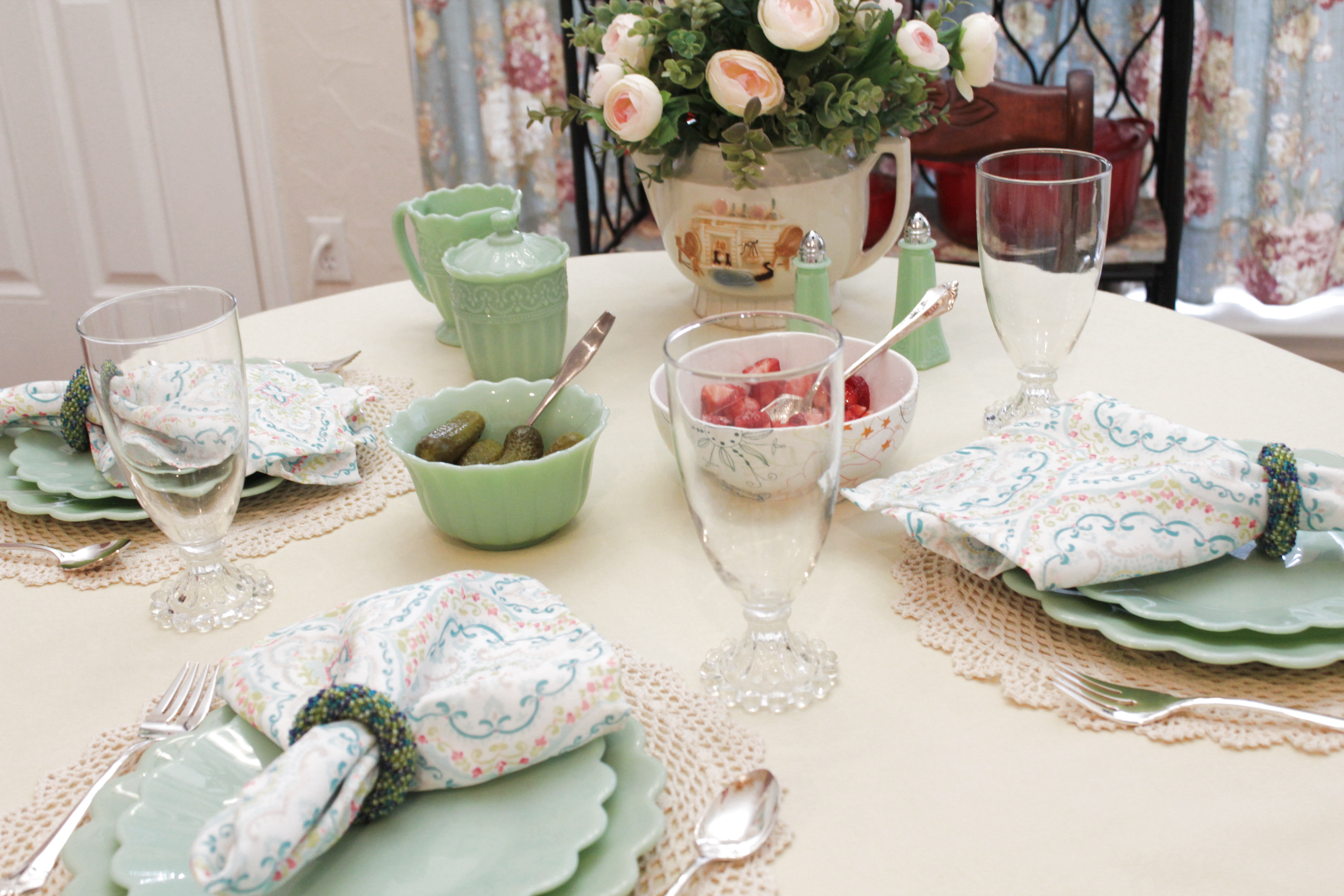 ReplyDeleteHi Sheila! I use the Pioneer Woman Jadeite plates for our every day dinnerware - her whole line of Jadeite is beautiful and looks so close to the real thing. Your teapot is lovely with the sweet little hearth scene. What a beautiful table you set for your friends. Jane